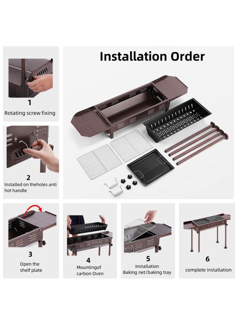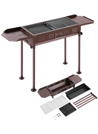 Barbecue Grill Mat Stainless Steel Charcoal Grill Foldable Outdoor Household Camping Equipment Suitable For 5 To 15 People A Brown