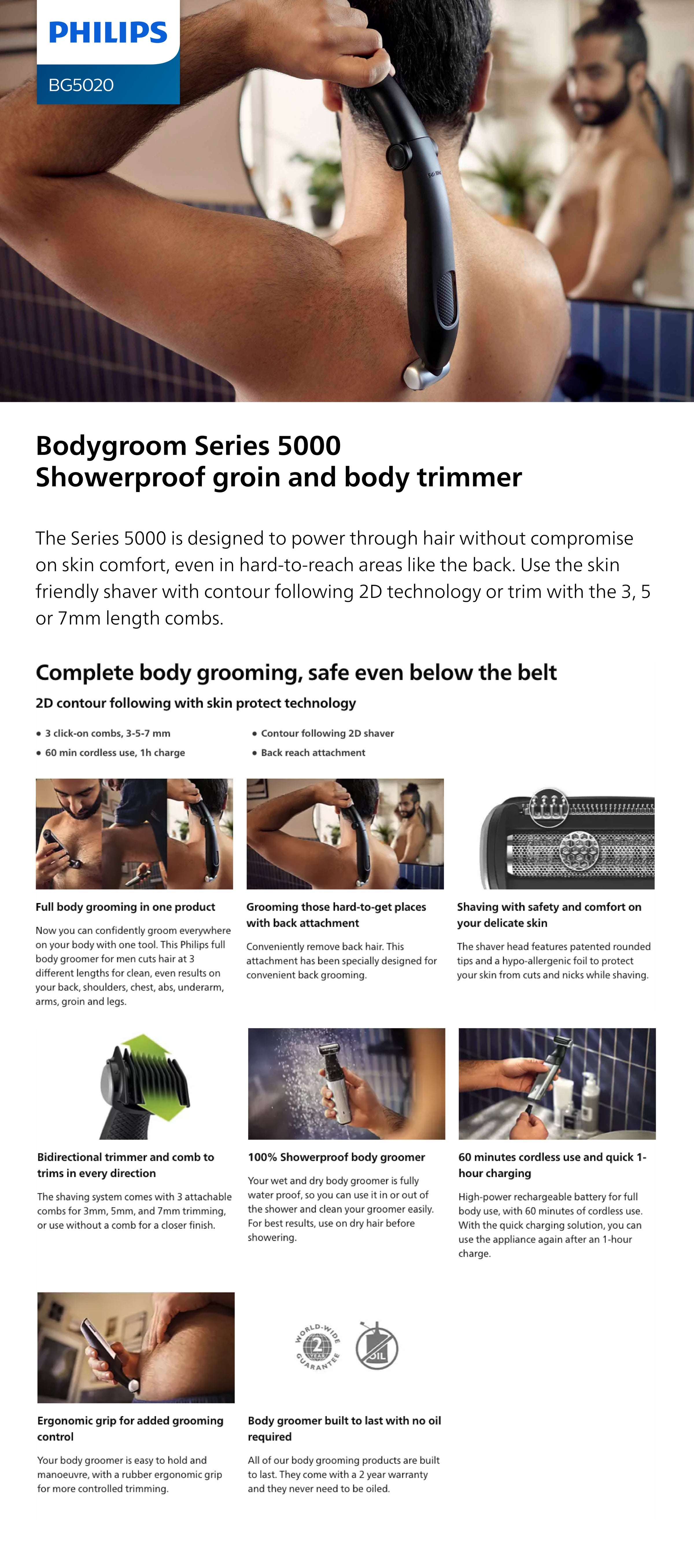 Confidently shave or trim all body zones. Designed to be safe and comfortable for underarms, chest & abs, shoulders, groin area and legs. The skin-friendly shaver catches and cuts hairs of different lengths, without the need for multiple tools or skin contact with sharp edges. Rounded tips and hypoallergenic foil for skin comfort. The shaver head features patented rounded tips and a hypo-allergenic foil to protect your skin while shaving. The bi-directional trimmers cut longer hairs, which are shaved by the foil for a closer result.