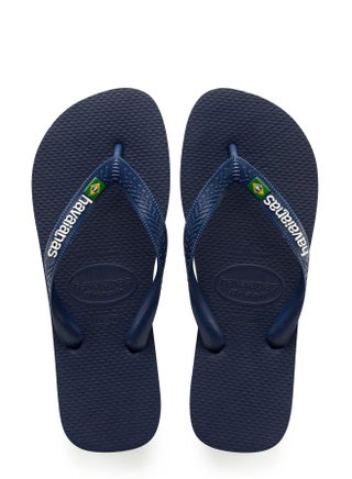 Brazil's original, authentic, and iconic Havaianas flip-flops in a wide range of colours. This model includes the singature Brazilian flag on the strap and the logo is coloured. The sole has 3 rubber stripes in three of Brazil's colours yellow, green and blue which make it one the most famous models of Havaianas.