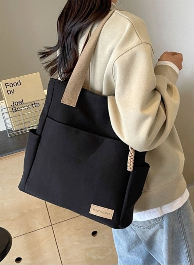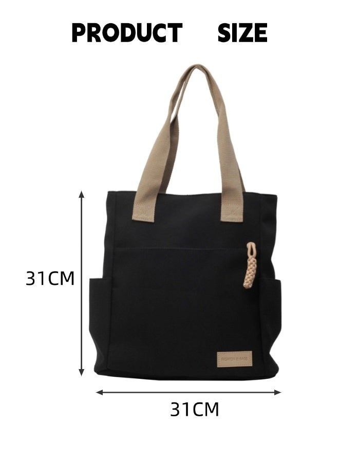 Canvas Tote Bag with Zipper Multi Pocket,Multiple Pockets Shoulder Bag,Large Capacity Handbags,for Daily Essentials, Travel, Work
