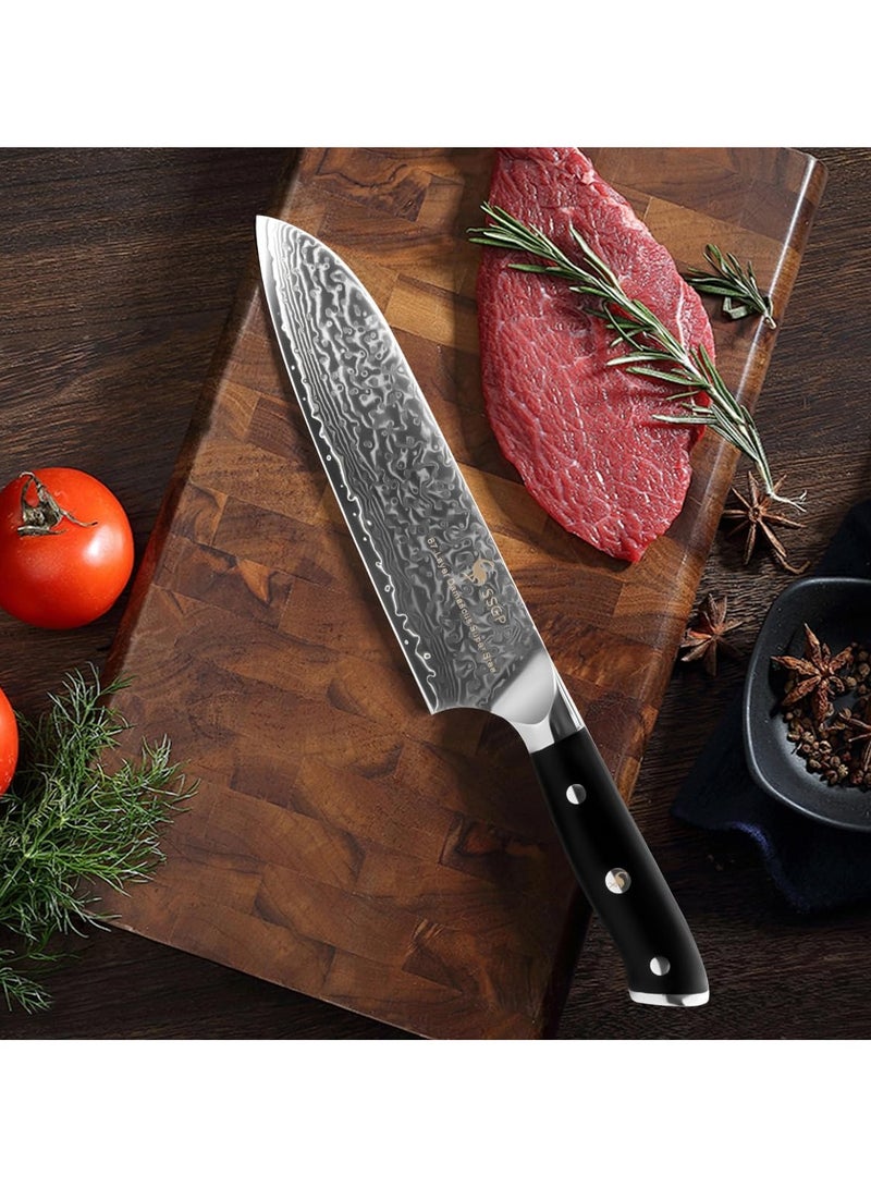 Crafted from multiple layers of Damascus steel with a middle layer of VG10, the forged surface is hand-polished to ensure the blade offers exceptional strength, durability and stain resistance.
