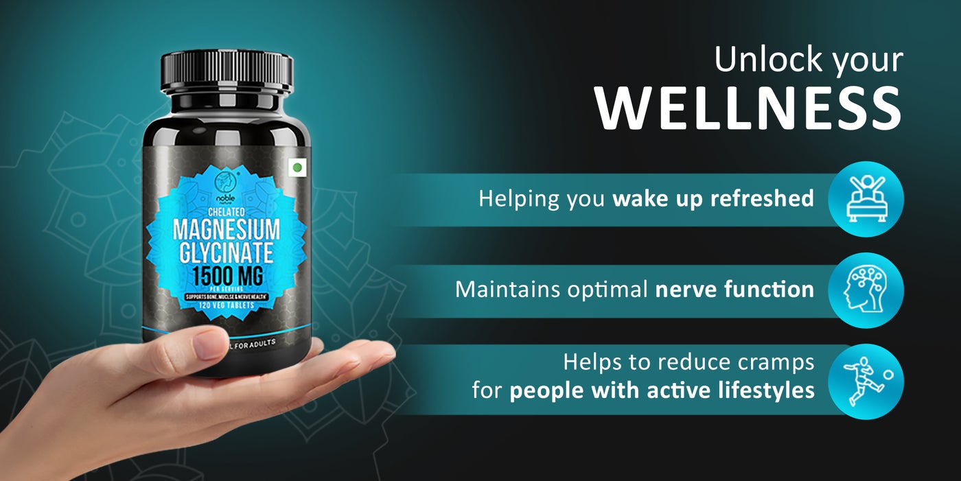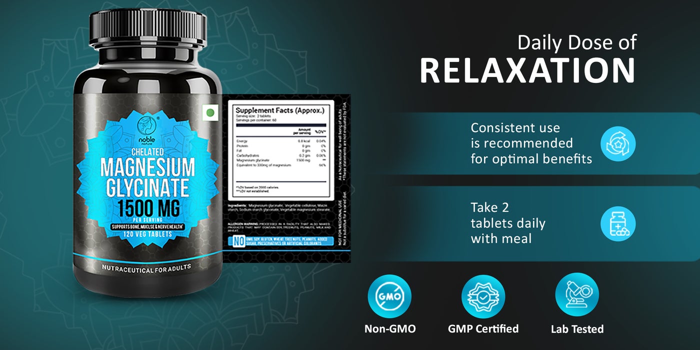 Magnesium Glycinate Chelated 1500MG - 120 Veg Tablets - High Absorption Supplement to Support Stress Relief, Sleep, Heart Health, Nerves and Muscles