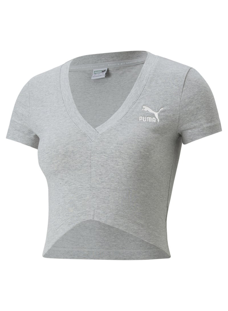 Our Classics collection is filled with no-frills items, including this slim tee with a cropped fit and asymmertrical hem.