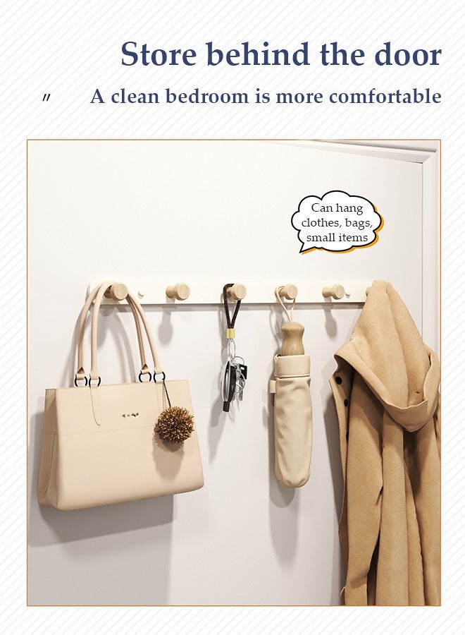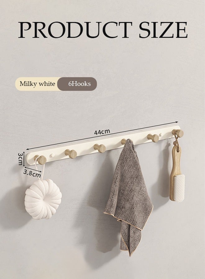 Coat Hooks Wall Mounted, multifunctional heavy duty Wall Hanger, modern wooden wall mounted clothes hanger,with 6 hooks, waterproof and rust proof, suitable for kitchen, bedroom, bathroom, entrance hall