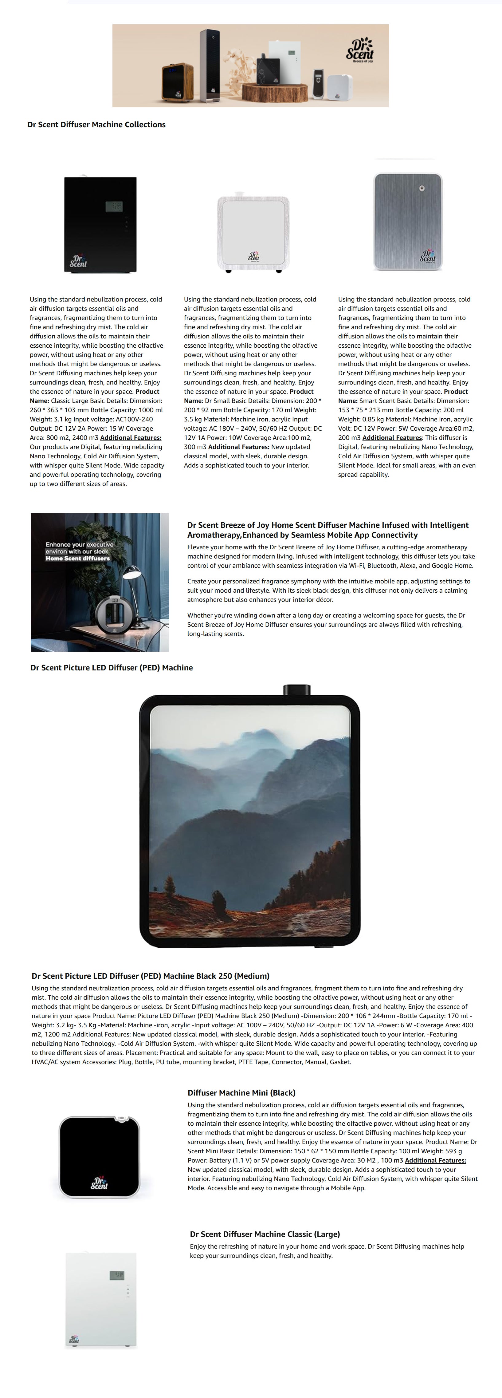 Enjoy the refreshing of nature in your home and work spec. Dr Scent Diffusing machines help keep your surroundings clean, fresh, and healthy. Great performance with full customization function diffuser with standard neutralization technology