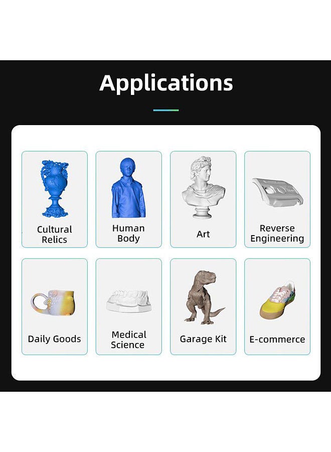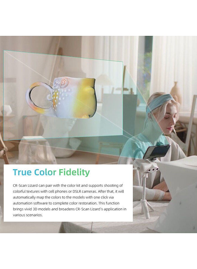 High Accuracy - CR-Scan Lizard can scan small parts and 3D prototypes with deep, hard-to-reach details. Designed with binoculars, the scanner is featured by its professional-grade accuracy of up to 0.05mm realized by the improved precision calibration method.