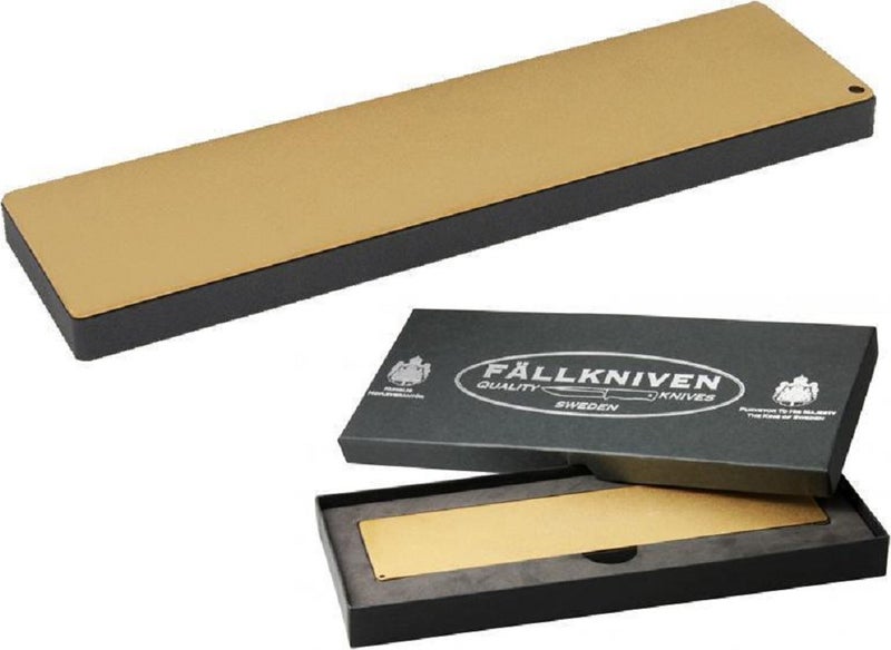 Despite its size (bench stone) that you can use on the bench, it is a rare sharpening stone (whetstone) as both surfaces have a different structure. The yellow part is a fast and aggressive diamond (25 micron) stone, the dark side is a thin ceramic stone. Both surfaces are precisely flat, which is a prerequisite for perfect sharpening results. These surfaces will maintain their flat shape despite wear and will not cause any problems when sharpening your knife. With this sharpening stone, made of the hardest known materials, you can correct and sharpen the blades of your knives and other tools, including those made of extremely hard powdered metals. Diamond surface works quickly and should be used when the mouth is damaged or very blunt. The sharpness achieved with the diamond surface is generally sufficient for daily work. The ceramic surface works much slower and provides a smoother, razor-sharp edge when needed. You do not need to lubricate the DC521 while sharpening, but you should clean it with warm water and soap after use. In this way, chip accumulation can be prevented. The product, which you may feel a little rough in the first uses, will gradually become smoother and better. DC521, which also has a lanyard hole, is presented in a gift box and with a brochure containing sharpening recommendations. Dimensions: 12mm x 55mm x 210mm This Swedish family company, whose history dates back to 1984, continues to produce knives that have earned the respect of almost everyone interested in knives. Based on the test results carried out by Lulea Technical University, they argue that their knives are the strongest in the world among stainless steel mass production. Fallkniven; It reflects the blending of Scandinavian knife culture with Japanese knife culture and steel technology. The company also produces with Damascus and other steels; "Laminate Steel", also known as San Mai (three pieces), generally consists of layers of different qualities (for example, Lam-Cos Steel: 420J2-CoS-420J2) and is stated to be 20 percent stronger than other steels. 39;' uses. In the stems; Materials such as leather, wood and thermorun have come to the fore. They continue to add the experience they have gained to their production approach, and the launch of the Pro series of the F1, S1 and A1 models they have been producing for a long time is a good example of this. Finally, Fallkniven was ordered by the King of Sweden as "Purveyor to the Royal Court of Sweden". It should be noted that it is a company awarded with the title (in short, royal supplier).Fallkniven DC521 Diamond Ceramic Sharpening Stone Technical Specifications: