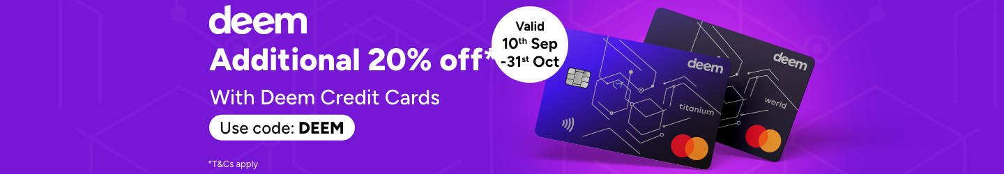 Discount will be applied when you checkout using your Deem Credit Card issued in UAE with the use of promo code Deem .