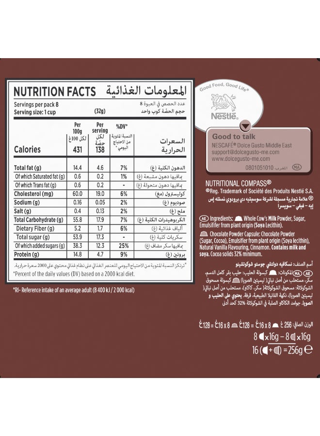 Enjoy an indulgent Hot Chocolate with Nescafe Dulce Gusto Chococino Chocolate & Milk Powder. This rich, velvety hot chocolate is made with the finest cocoa beans and finished with a frothy layer of creamy whole milk.