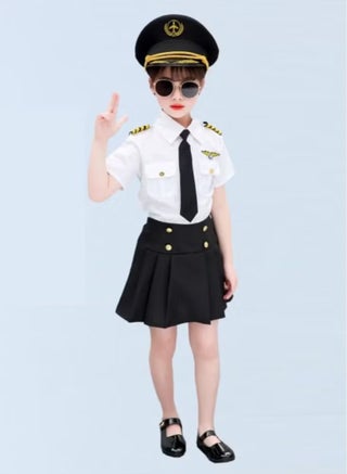 The costume set include: Sleeve shirt + trousers + hat + belt +sunglass + epaulettes + chest logo + tie