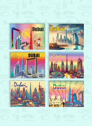 Add a touch of luxury and culture to your collection with these stunning foil magnets, beautifully crafted using premium gold and silver foil. Each magnet features vibrant, colorful Dubai-inspired designs that capture the city's iconic landmarks, rich heritage, and modern charm with exceptional detail and brilliance.