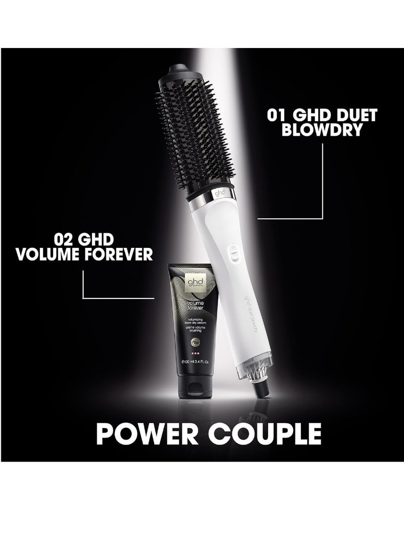 Introducing ghd Duet Blowdry, ghd's revolutionary 2-in-1 hair dryer brush,effortlessly transforming hair from wet to blow dried with no heat damage and 3x more volume.
