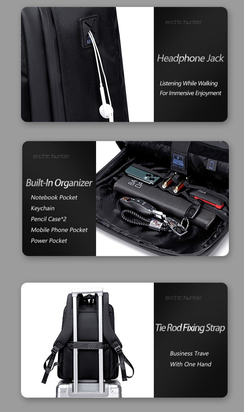 | Feature | Waterproof, Business, Fit for Air Travel, Wear Resistant, USB |