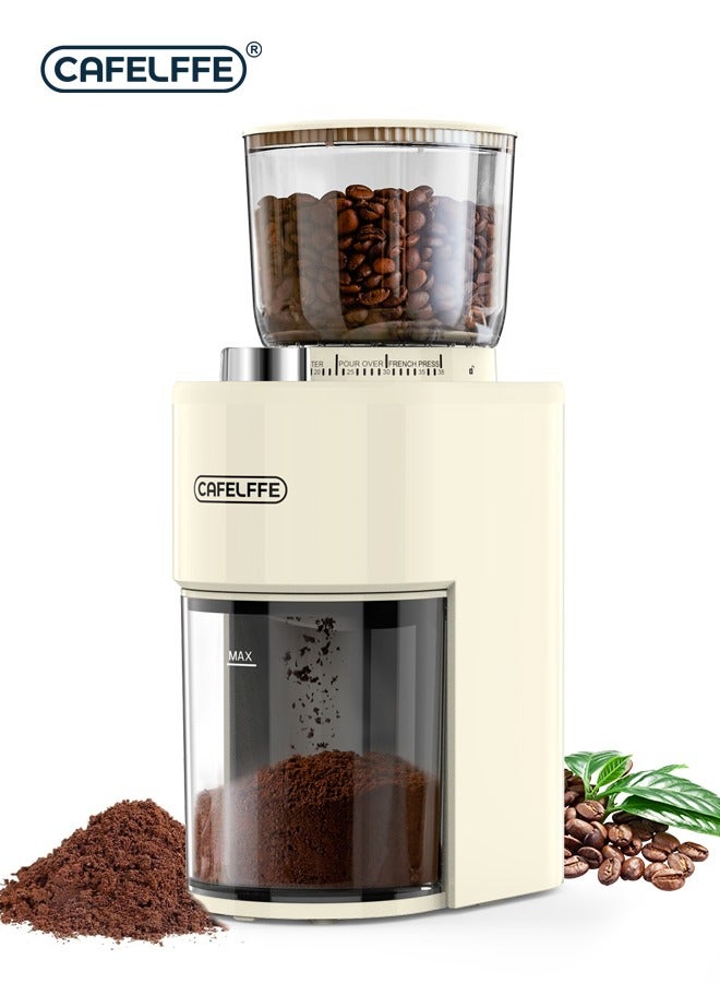 Electric Burr Coffee Grinder Adjustable Burr Grinder 38 Precise Grind Settings And 7 Levels Time Adjustable White