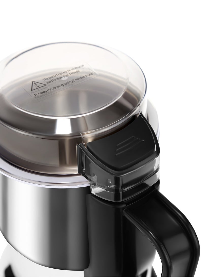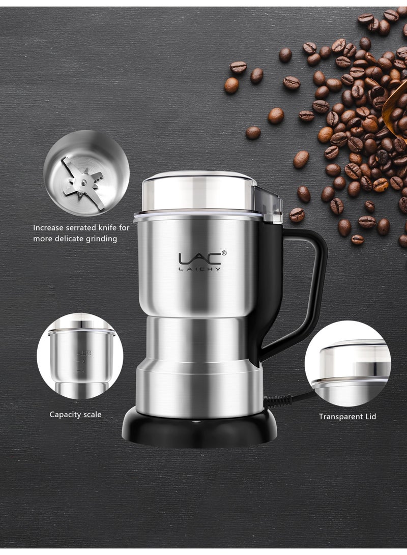 This Electric Coffee Machine Grinder also doubles as an Electric Spice & Machine Grinder. It comes with a large grinding capacity, making it perfect for grinding a wide range of ingredients like spices, herbs, nuts and grains. With its electric operation, it offers great convenience. Whether you want to grind coffee beans or crush spices, this grinder is designed to deliver efficient and consistent results, meeting your diverse grinding needs easily.