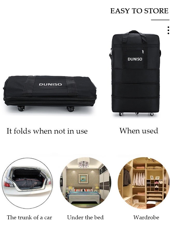 Expandable Foldable Luggage Bag Suitcase Collapsible Rolling Travel Luggage Bag Duffel Bag Rolling Wheeled Suitcase Travel Oxford Duffel Bag for Men and Women Lightweight Large Capacity Suitcases