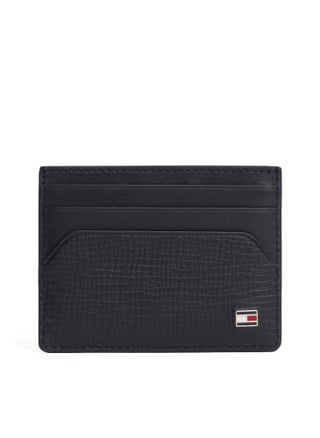 Safely store your credit cards in this compact holder, crafted from textured saffiano leather and finished with a minimalist flag