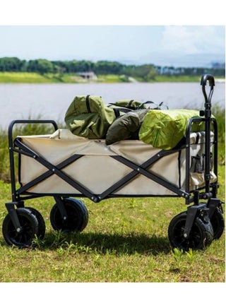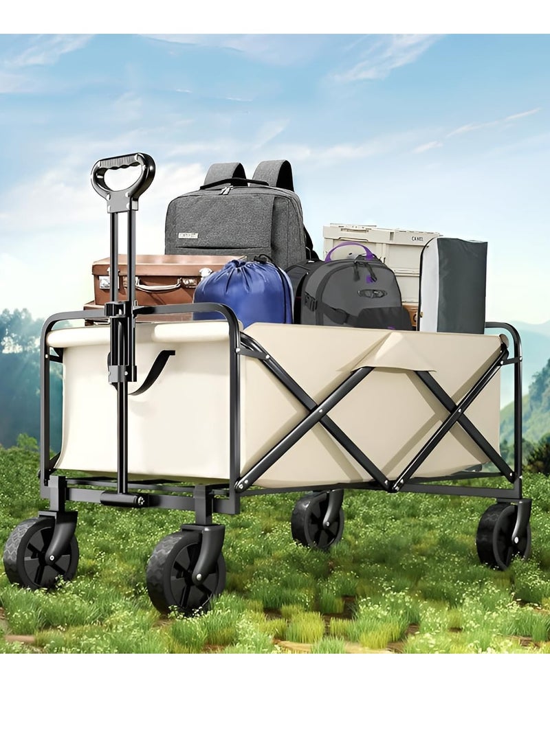 Folding Outdoor Multi-Functional Utility Wagon, Beach Cart Large Capacity, Garden Cart with Adjustable Handle Folding Double Layer Cloth Cover Trolley Outdoor Camping with Storage Basket (BEIGE)