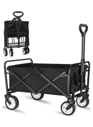 Collapsible Folding Heavy Duty Shopping Trolley Folding Multi-Functional Portable Utility Wagon Beach Trolley with Storage Basket Outdoor Camping Garden Cart with Adjustable Handle (BEIGE) Introducing Heavy Duty Shopping Trolley: a versatile, foldable utility wagon in sleek black. Ideal for beach trips, camping, and gardening. Features a spacious storage basket and an adjustable handle for convenience. Portable and multi-functional, this cart is your go-to for easy and efficient transportation.