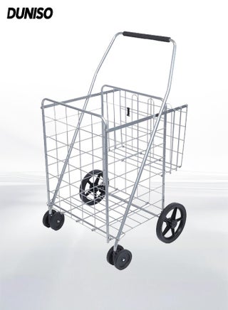 Folding Shopping Cart,Rolling Dolly with 360° Swivel Wheels and Double Baskets,Trolley for Outdoor Activities, Trips, Camping, Shopping,Compact Lightweight