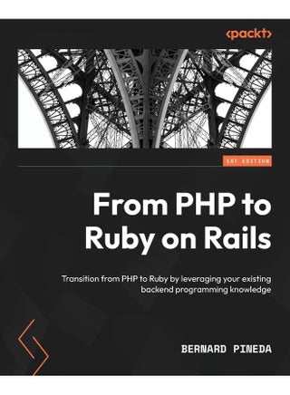 Book DescriptionBecome a proficient Ruby developer and expand your skill set by exploring the world of Ruby from a PHP developer's perspectiveKey FeaturesUnderstand the notable differences between Ruby and PHP developmentGain practical experience and proficiency in Ruby by contrasting PHP examples with their equivalent Ruby counterpartsExplore how Ruby integrates into the Ruby on Rails framework and make insightful comparisons with PHP frameworksPurchase of the print or Kindle book includes a free PDF eBookBook DescriptionAre you a PHP developer looking to take your first steps into the world of Ruby development? From PHP to Ruby on Rails will help you leverage your existing knowledge to gain expertise in Ruby on Rails. With a focus on bridging the gap between PHP and Ruby, this guide will help you develop the Ruby mindset, set up your local environment, grasp the syntax, master scripting, explore popular Ruby frameworks, and find out about libraries and gems.This book offers a unique take on Ruby from the perspective of a seasoned PHP developer who initially refused to learn other technologies, but never looked back after taking the leap. As such, it teaches with a language-agnostic approach that will help you feel at home in any programming language without learning everything from scratch. This approach will help you avoid common mistakes such as writing Ruby as if it were PHP and increase your understanding of the programming ecosystem as a whole.By the end of this book, you'll have gained a solid understanding of Ruby, its ecosystem, and how it compares to PHP, enabling you to build robust and scalable applications using Ruby on Rails.What you will learnSet up a robust development environment by configuring essential tools and dependenciesUnderstand the MVC model and learn effective techniques for working with Ruby libraries and frameworksIntegrate authentication functionality into your Rails application by leveraging gemsFind out how to process data from forms, URLs, and sessions within a Ruby on Rails applicationGain proficiency in using functions and gems for debugging and troubleshooting your Rails projectCreate a simple Rails application, run it, and debug it in production modeWho this book is forThis book is for PHP developers new to Ruby and Ruby on Rails. Whether you're a seasoned PHP developer or just starting out, this book will show you how you can transfer your existing PHP knowledge to Ruby and build web applications using the powerful Ruby on Rails framework.Table of ContentsUnderstanding the Ruby Mindset and CultureSetting Up Our Local EnvironmentComparing Basic Ruby Syntax to PHPRuby Scripting versus PHP ScriptingLibraries and Class SyntaxLibraries vs GemsRuby Class SyntaxDebugging RubyBringing It All TogetherConsiderations for Hosting Rails Applications vs PHP Applications