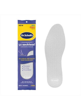 Go Sockless! Cushioning Insoles, Unisex, 3 Pairs, Trim to Fit Inserts