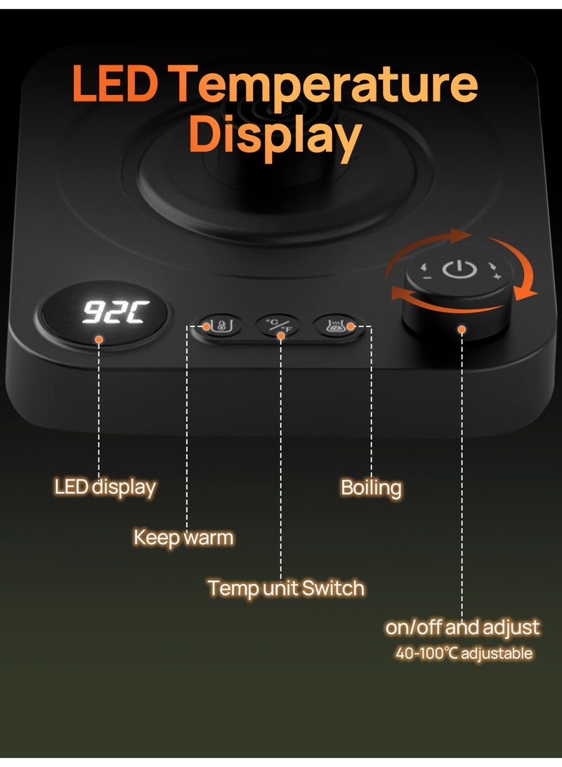 Precise Temperature Control: Set the perfect temperature for your coffee or tea with the easy-to-use display and temperature control feature.