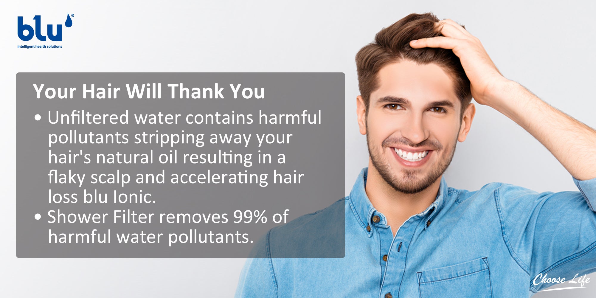 The blu Ionic Shower Filter removes 99% of the harmful pollutants that damage the hair fossils and cause hair loss. It will restore your hair to its healthiest version.