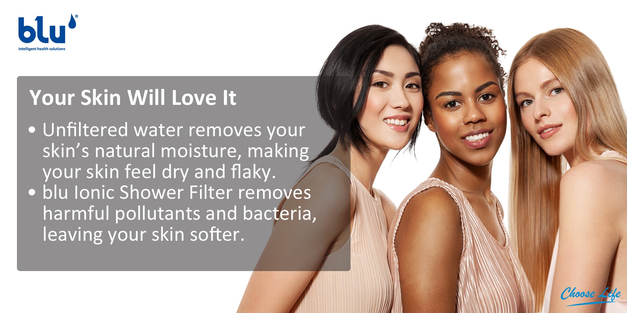 Using blu Ionic Shower Filter removes harmful pollutants and bacteria from the water leaving your skin feeling significantly softer.