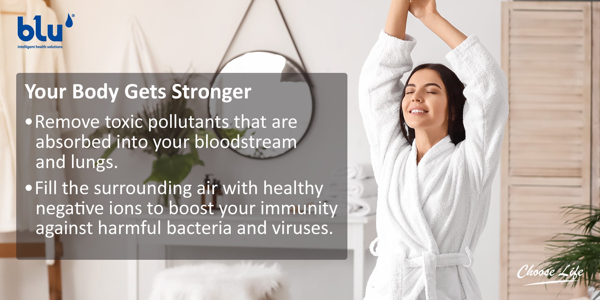 The blu Ionic Shower Filter not only removes 99% of the harmful water pollutants, but it fills the surrounding air with healthy negative ions which boosts your immunity to guard you against harmful bacteria and viruses.