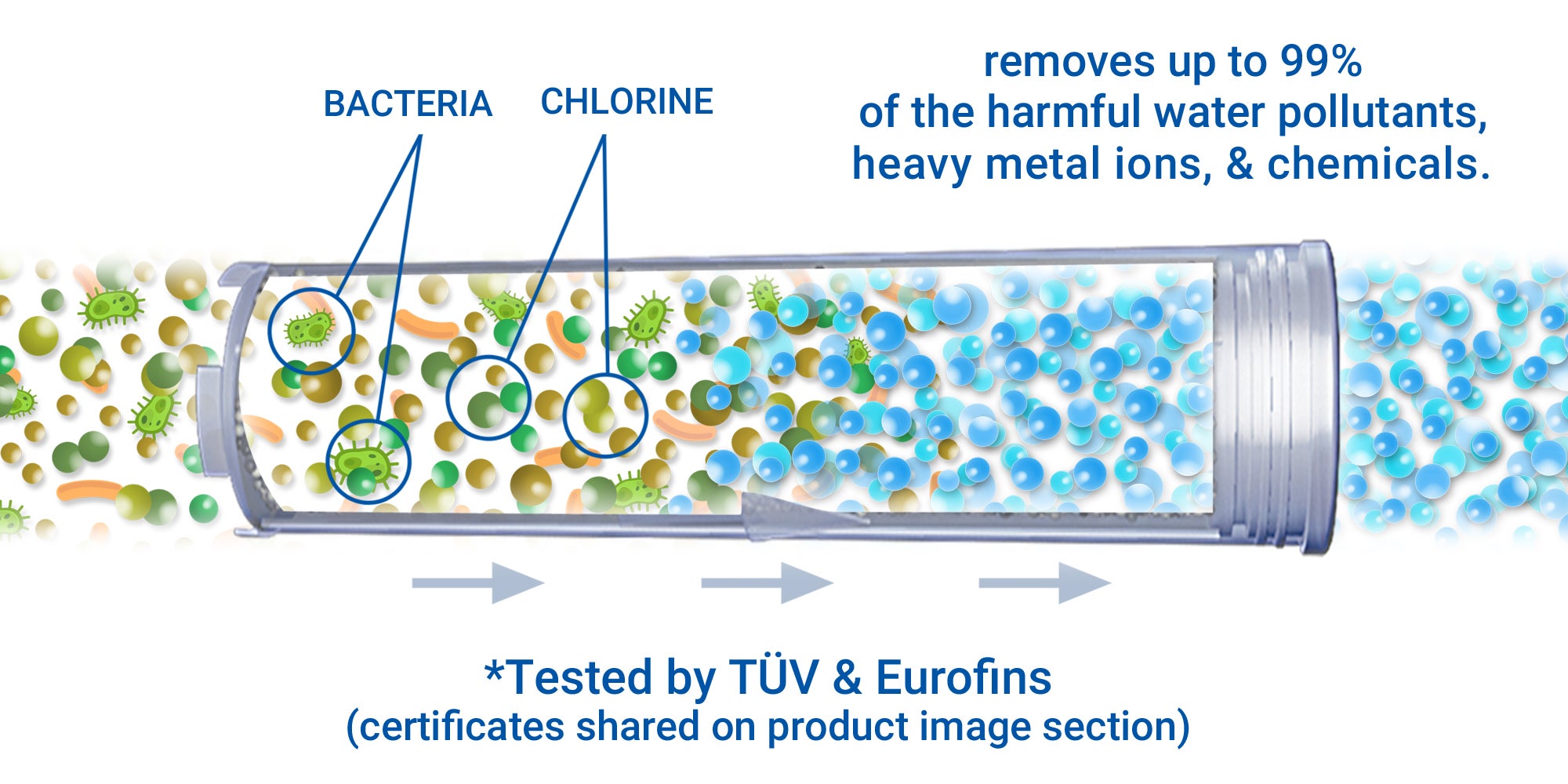 • Removes 99% of the harmful water pollutants