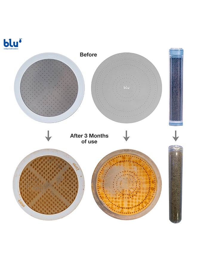 The blu Ionic Shower Filter features a multi-stage shower filtration system and an NMC filter that removes 99% of toxic pollutants, bacteria, and solid impurities from your shower water allowing you to have the safest shower experience ever.