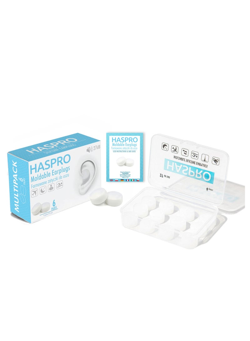 HASPRO [6-Pair Pack] Soft Silicone Earplugs for Sleeping, Swimming & Bathing, Anti-Snoring, Noise Cancelling Reusable Earplugs. Adults & Children (trn)