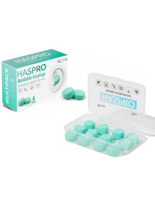 HASPRO Moldable Earplugs (6 Pairs) are fully moldable, reusable earplugs. Safe and comfortable, they are made of high-quality silicone that is hypoallergenic and soft to the touch. HASPRO Moldable Earplugs can be shaped in the palm of your hand like modelling clay, which means each user can achieve the perfect fit within mere seconds. The set contains 6 pairs (12 pieces total) of moldable earplugs. CUSTOMISABLE FIT HASPRO’s moulded earplugs are also a handy solution for people who find the more common one-size-fits-all plugs uncomfortable or ill-fitting due to the shape or size of their ears. Our plugs are supple and adaptable, like plasticine, meaning their shape can be adjusted to fit almost every ear – be they adult or child size. WATERPROOF, SEALED EARPLUGS – IDEAL FOR THE SWIMMING POOL Moldable earplugs are a great solution for people who must avoid direct contact between the ear canal and water for health reasons. By adapting to fit the external ear of each individual user, every drop of water is blocked before it can enter, thus protecting the canal and inner ear. The plugs work equally well in a swimming pool or in open water, but they can be used wherever there is a risk of water getting into the ear.