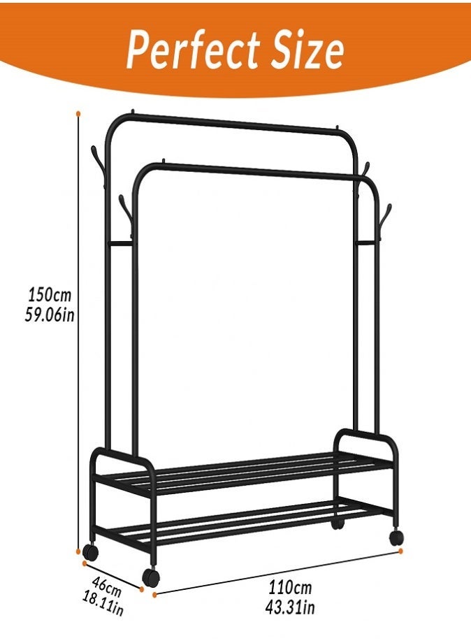 Garment Rack with Wheels - Heavy-Duty Clothes Organizer (Black)