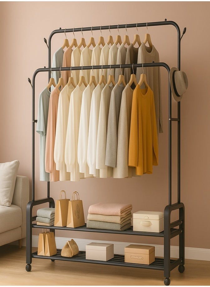 Featuring a smart double rod design, it offers generous hanging space for shirts, coats, dresses, and jackets. The upper and lower rods serve as a strong hanger rod system, while the added adjustable clothes stand functionality makes organizing a breeze.
