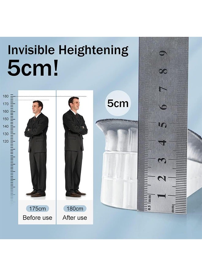 Height Increase Heel Pad Gel Height Increase Insole, Invisible Heel Lift Inserts, 3-Layer 5cm Gel Adjustable Shoe Insert Lift for Men and Women (1 Pair, Gray)