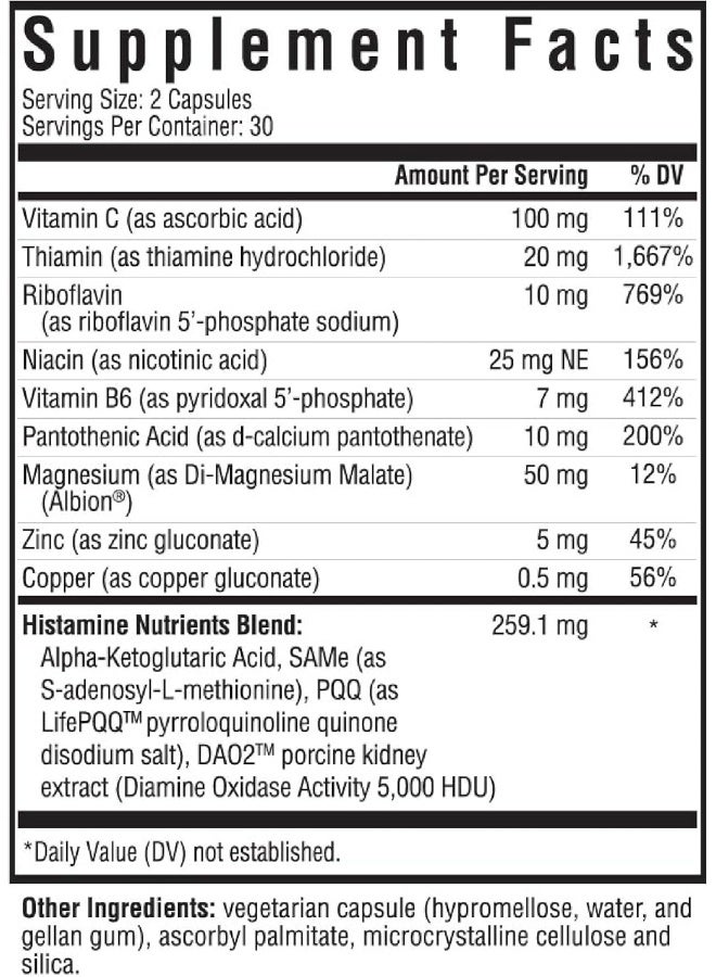 Enhanced with cofactor nutrients for total histamine processing