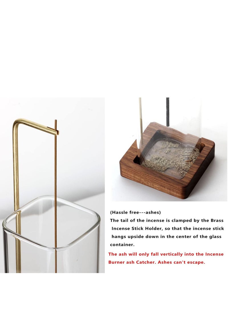 Incense Holder for Sticks Anti-Ash Flying with Removable Glass Ash Catcher Mess-Free Incense Burner Upside Down Incense Burner for Burning Home Decor Yoga Meditation
