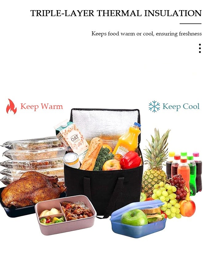 Insulated Grocery Bag with Zippered Top, Lunch Delivery Bag, Insulated Shopping Bag, Reusable Food Cooler Bag, Washable, Reinforced Bottom and Handles, Insulated Grocery Bags for Hot Or Cold Food