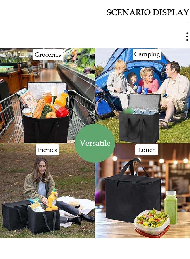 【Large Capacity】: 58*35*38 cm. Spacious enough to fit a large amount of grocery items while shopping at the grocery store or farmers market, carrying multiple orders when delivering food, or taking plenty of food for picnics, camping, catering, beach days, tailgating, potlucks, or parties.
