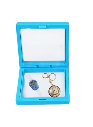 A beautifully designed Islamic gift set featuring a digital tasbeeh counter and a Madina-themed keychain. Perfect for daily dhikr and a meaningful gift for friends and family.