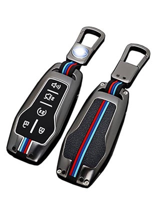 Key Case Keychain Metal Shell Cover Compatible With Ford 2018 Taurus Mustang Raptor F150 Explorer Series Short Buckle Gunmetal