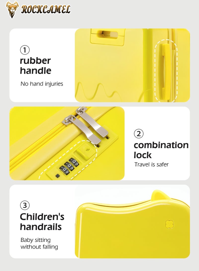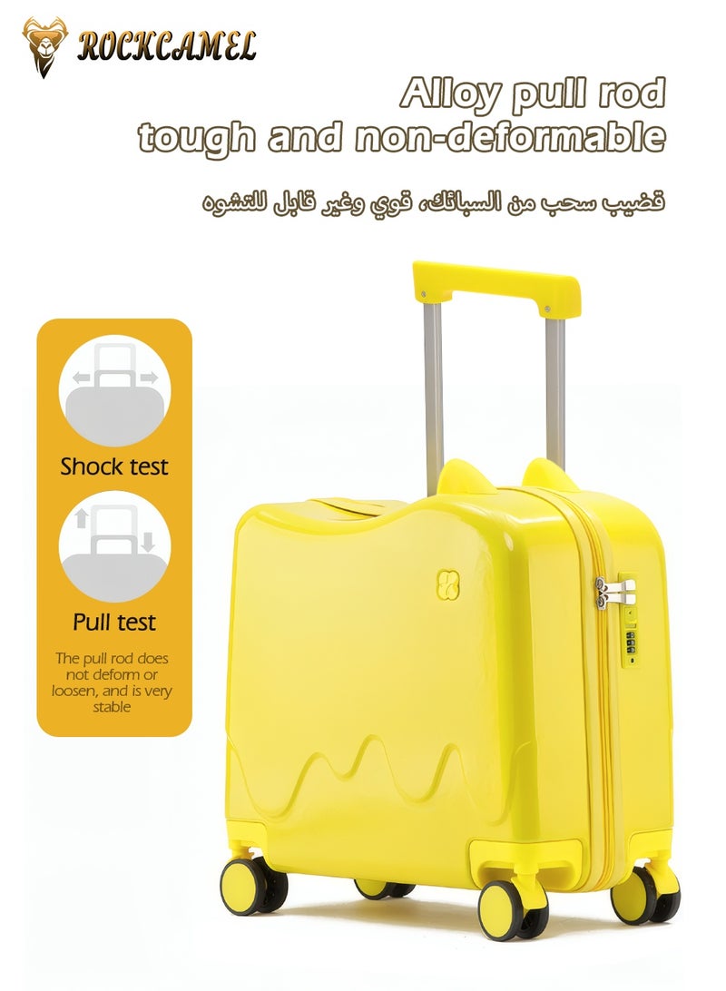 Kids Ride-On Luggage with Cat Ears Design, 360-Degree Swivel Wheels, Suitcase Built-in Anti-Theft Password Lock, Telescopic Handle, Anti-Scratch, Fun Trunk Case for Enjoyable Journeys(Yellow, 18-inch)