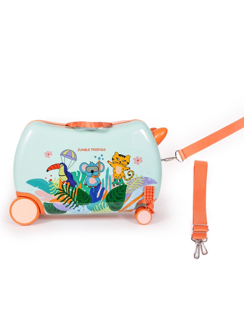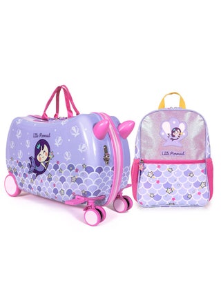 Milk&Moo Travel Combo: Make every trip a breeze with this practical and playful 2-piece travel set for kids. The ride-on suitcase is designed for children aged 2–6 years, featuring a comfortable footrest, swivel wheels for smooth maneuvering, and a pull strap for parents. It provides around 21 liters of storage with internal straps to keep items secure, and it doubles as a ride-on toy to ease airport fatigue. Paired with a lightweight, padded backpack that includes a main compartment, front pocket, mesh side pockets, and a dedicated tablet section, this combo ensures your child stays entertained, organized, and comfortable wherever they go.