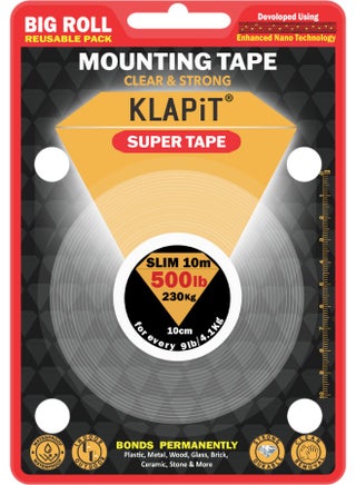 Use this tape's extreme transparent bond instead of screws & hooks to hang items such as frames, carpets, doormats, power cords, kitchen tools, & other home & office items. Hang, Install, Fix Anything Anywhere using KLAPiT SUPER TAPE.