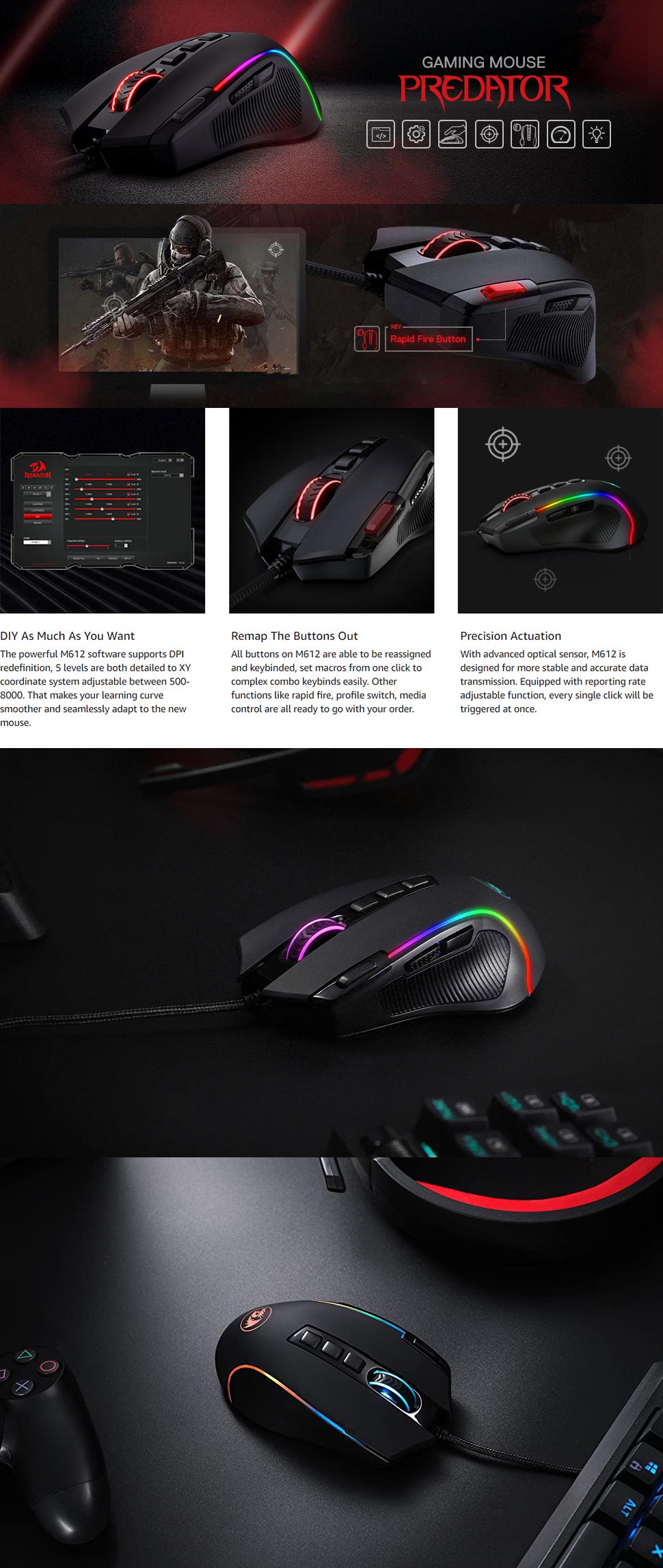 | What's In The Box | 1 x Redragon M612 Gaming Mouse 1 x User Manual |