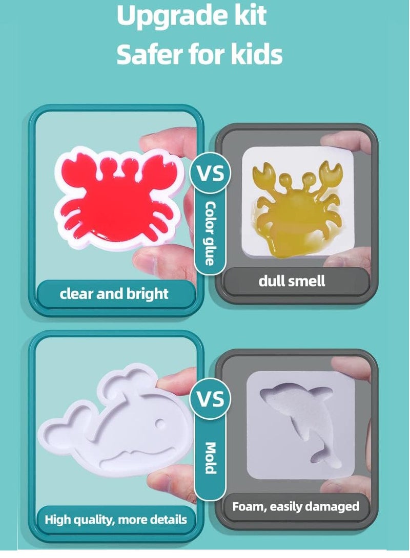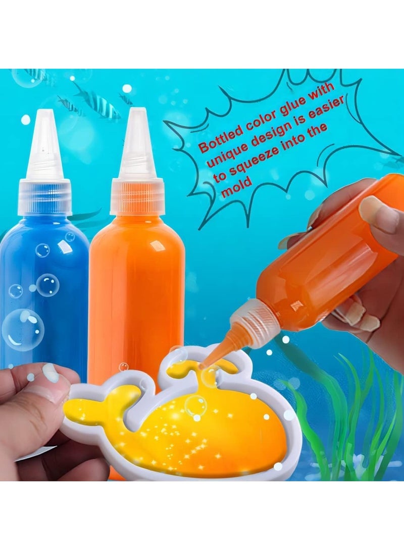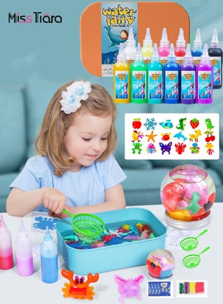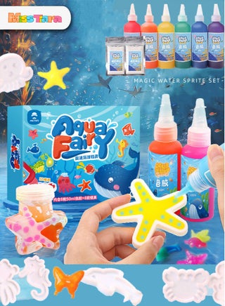 【Magic Water Sprite Combination】stirring rod*1,brush * 1,100ml color glue * 12, 50ml Luminous Glue*1, animal mold * 10, fishing net * 1, plastic basin * 1, drifting bottle * 1, Sprite companion * 3, manual * 1,measuring cup*1,Gloves,With so many things, children can play happily at home。