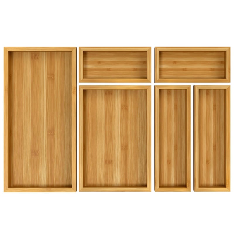 High Quality: Made of high grade 100% bamboo ( including the base, not MDF ), a highly renewable, natural resource that is food-safe and sturdy, the drawer organizer set is much more sturdy and durable than plastic organizer. High temperature drying technology is adopted to lock the water content ratio of gold, so that it is not easy to deform and crack. Also, the surface is pretty smooth.