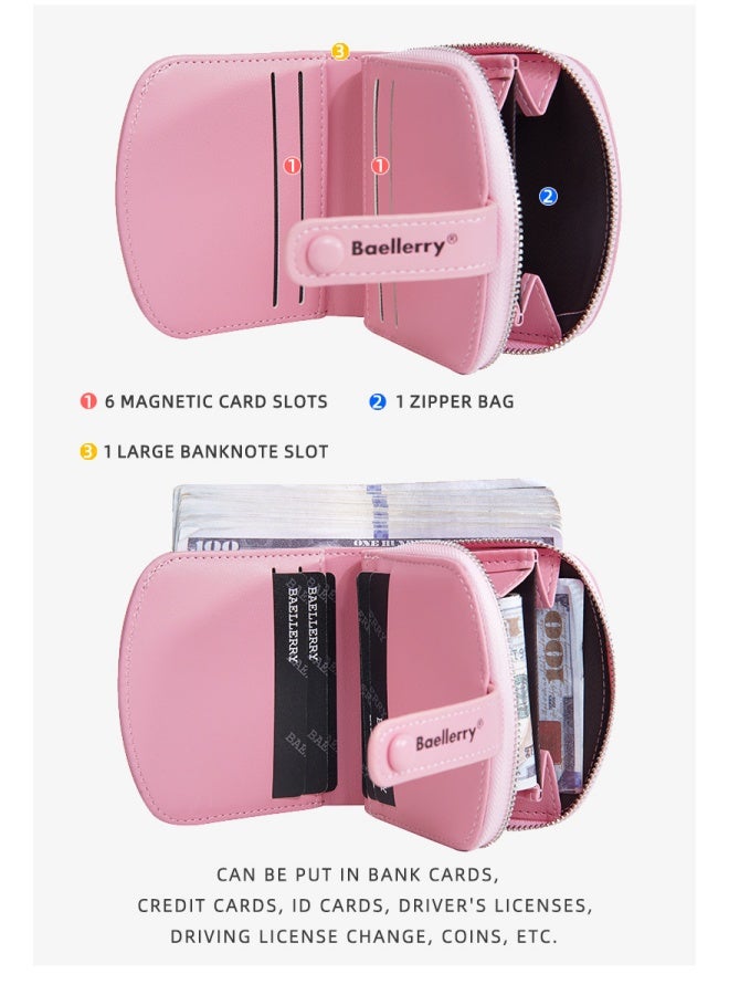 The pink edging and buckle strap add a soft and sweet touch to the wallet. The clear brand logo on the buckle strap not only highlights brand recognition, but also adds a delicate touch to the cute appearance of the wallet.